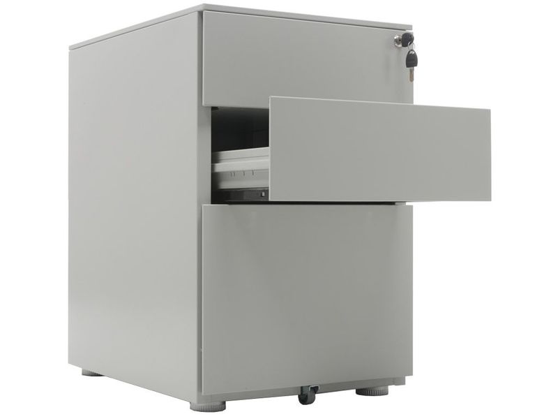 - Опции: пластиковые лотки и металлический ящик для канцелярских принадлежностей и других предметов. Возможность комбинирования цветов: корпус + фасады ящиков и крышка (конструкция тумбы металл+металл). Или отделка фасадов ящиков и крыши тумбы ламинированной плитой ЛДСП